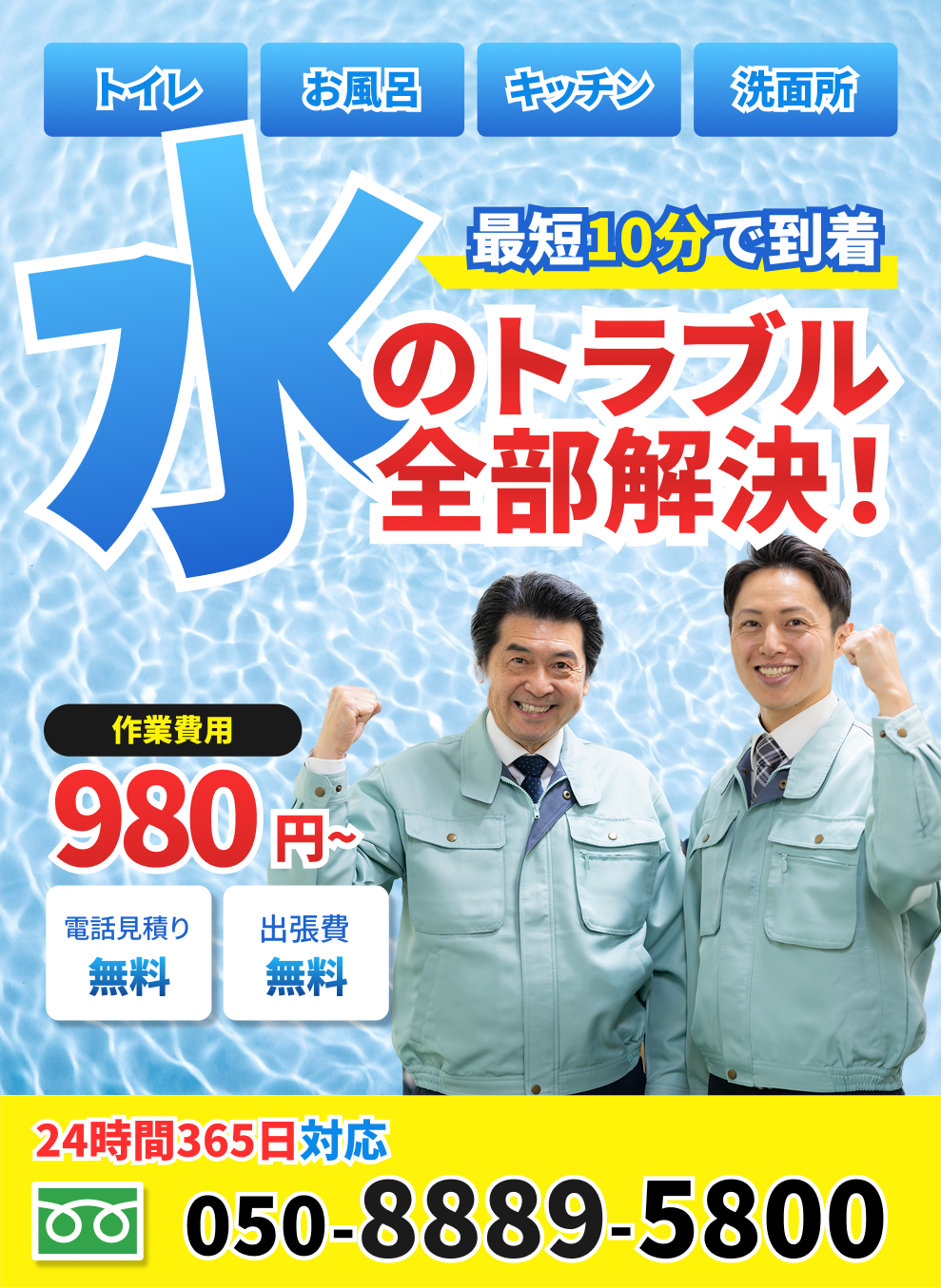 A.トイレの詰まりなど簡単な作業であれば5分~30分程度です。詳細はお電話や現地調査時にお伝えします。
